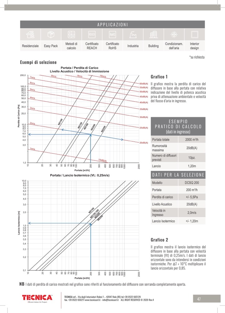 NB I dati di perdita di carico mostrati nel grafico sono riferiti al funzionamento del diffusore con serranda completamente aperta.