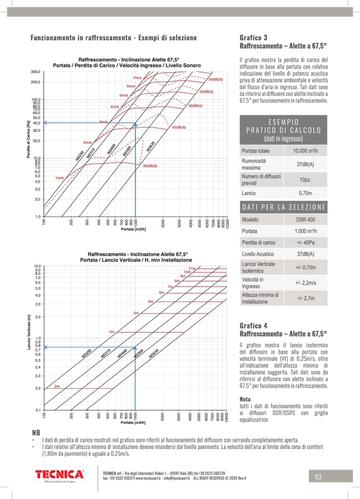• I dati di perdita di carico mostrati nel grafico sono riferiti al funzionamento del diffusore con serranda completamente aperta.