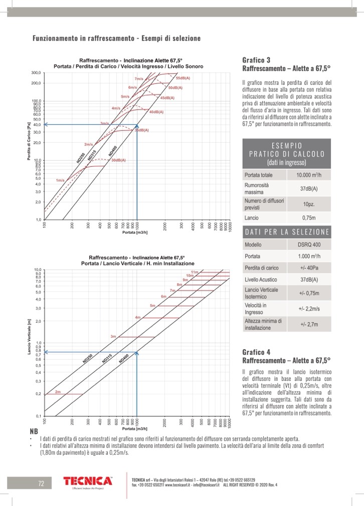 I dati di perdita di carico mostrati nel grafico sono riferiti al funzionamento del diffusore con serranda completamente aperta.