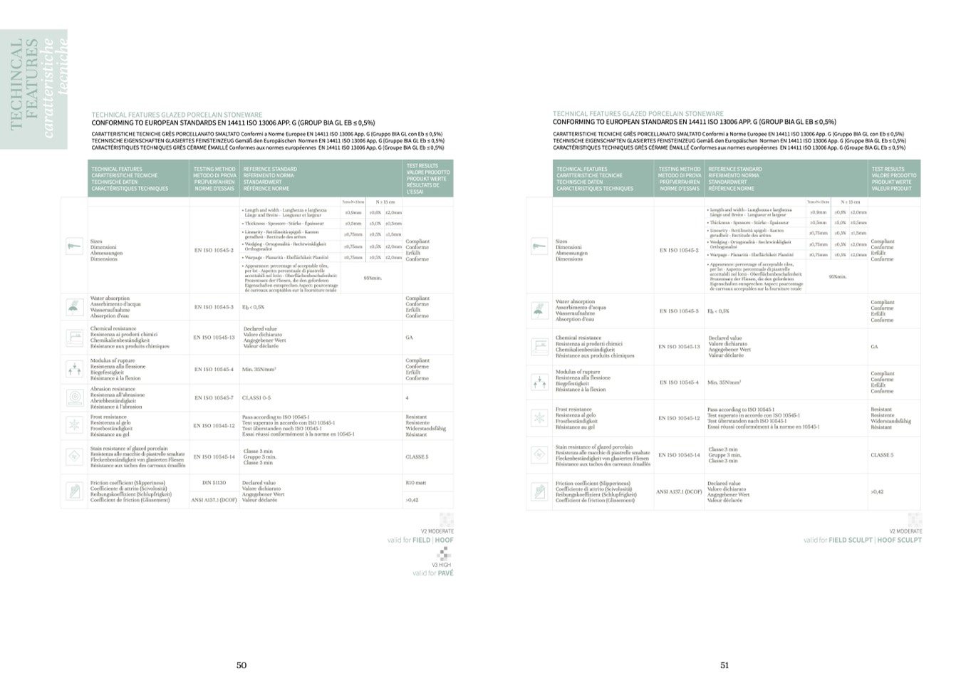 CARATTERISTICHE TECNICHE GRÈS PORCELLANATO SMALTATO Conformi a Norme Europee EN 14411 ISO 13006 App. G (Gruppo BIA GL con Eb ≤ 0,5%)