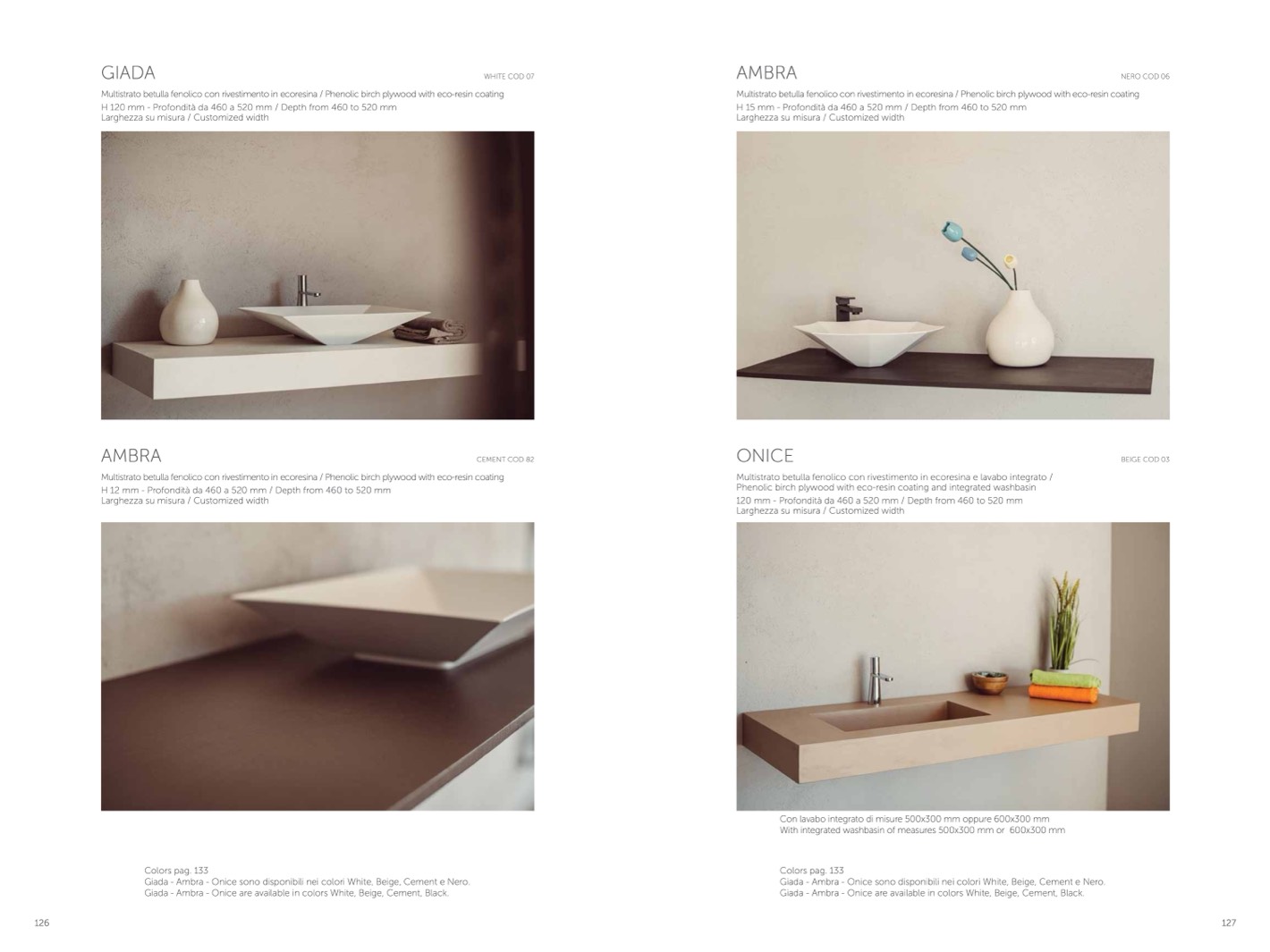 giada - ambra - onice are available in colors white, beige, cement, black.
