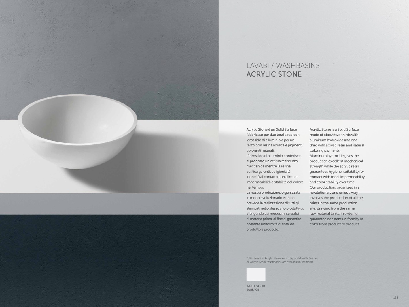 tutti i lavabi in acrylic stone sono disponibili nella finitura: