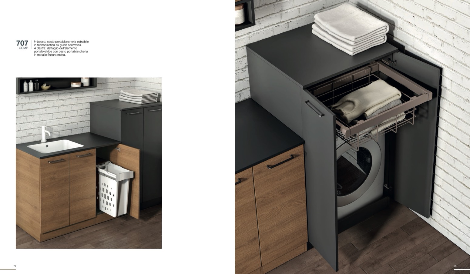 In basso: cesto portabiancheria estraibile