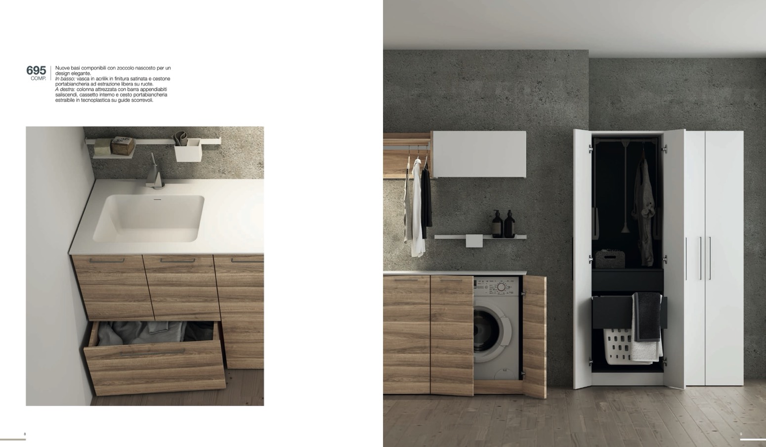In basso: vasca in acrilik in finitura satinata e cestone