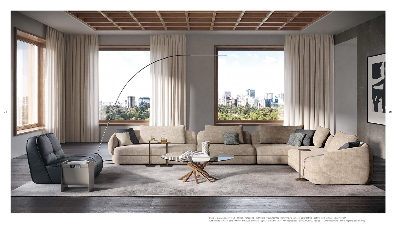 fica soft leather MG73 - ATARI coffee table - STING BRUSHED side tables - LAMPO floor lamp - JERRY magazine rack - KIMI rug