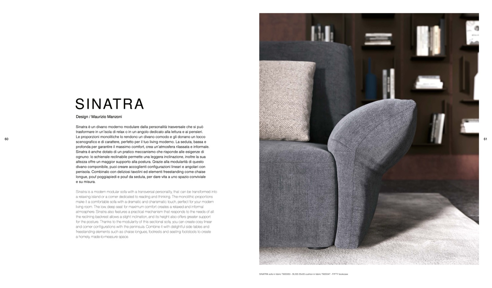 Sinatra is a modern modular sofa with a transversal personality, that can be transformed into