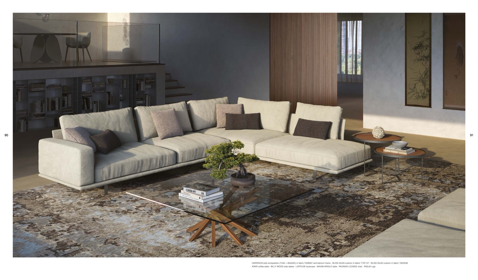 ffee table - BILLY WOOD side tables - LATITUDE bookcase - MAXIM ARGILE table - RHONDA LOUNGE chair - RADJA rugs