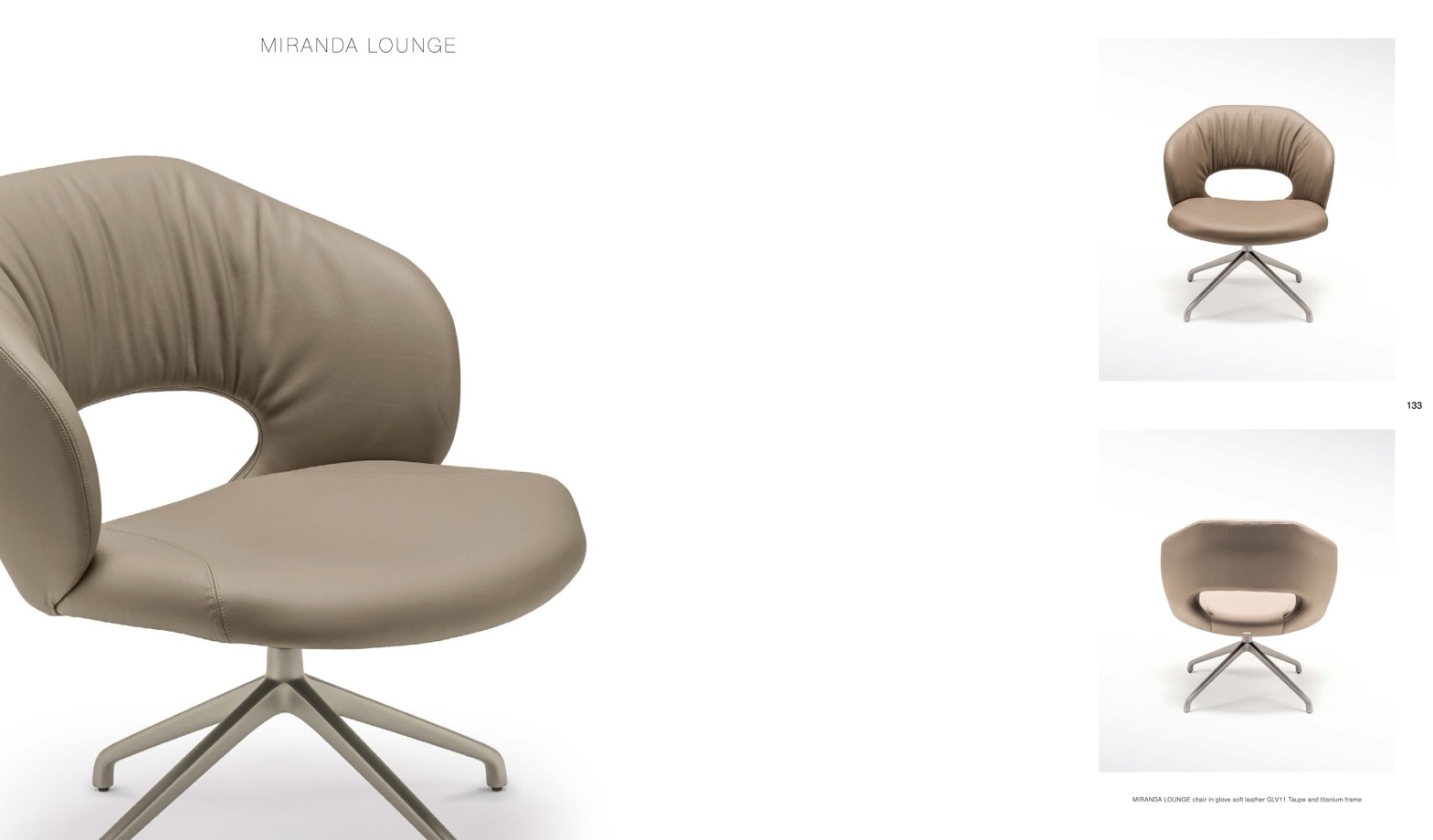 MIRANDA LOUNGE chair in glove soft leather GLV11 Taupe and titanium frame