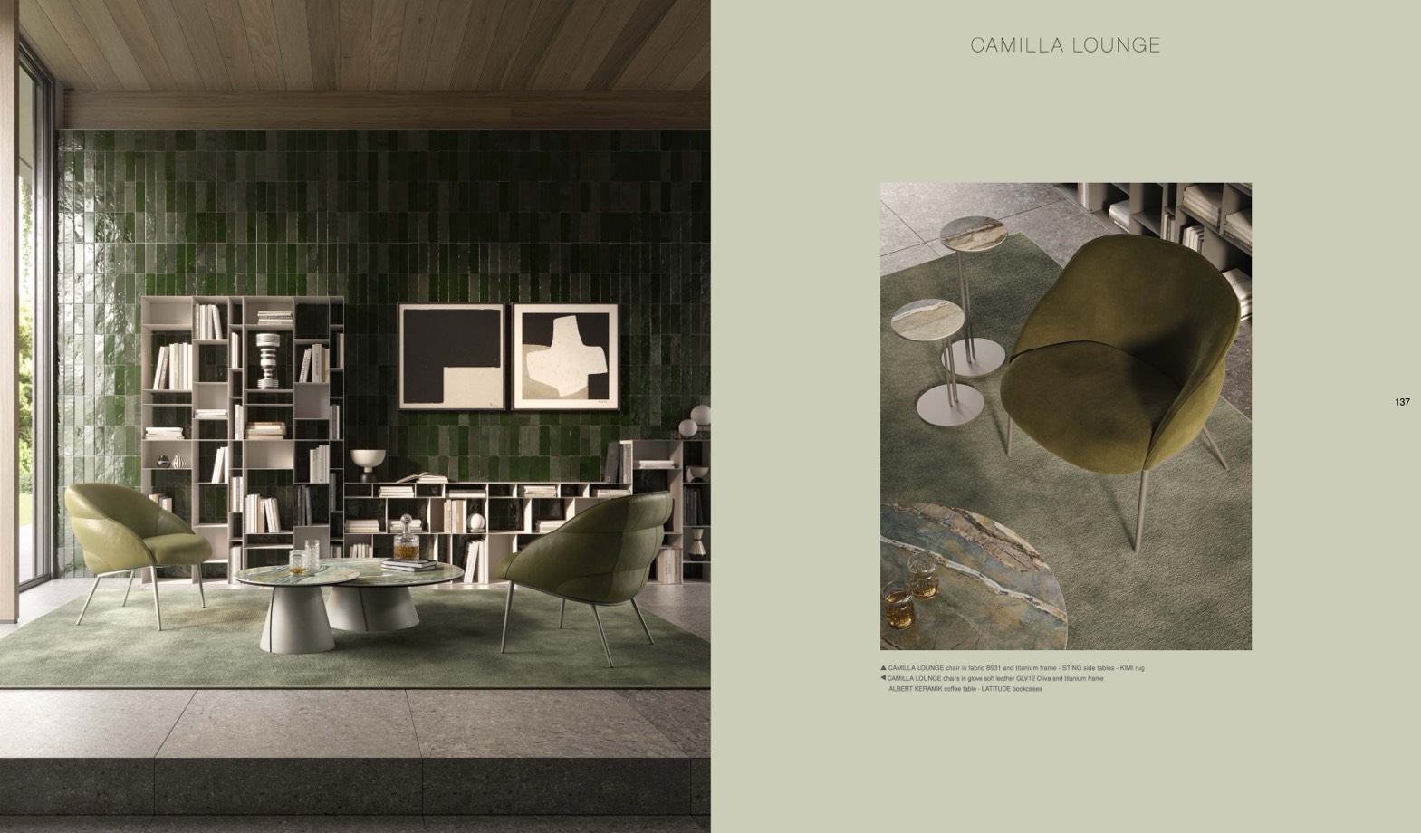 CAMILLA LOUNGE chairs in glove soft leather GLV12 Oliva and titanium frame