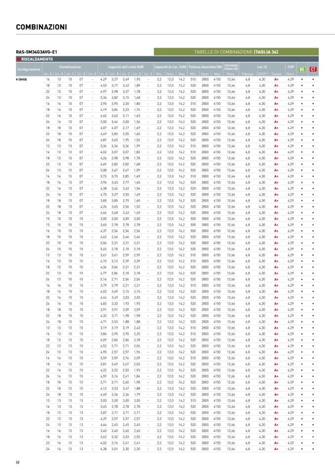 TABELLE DI COMBINAZIONE (TAGLIA 34)