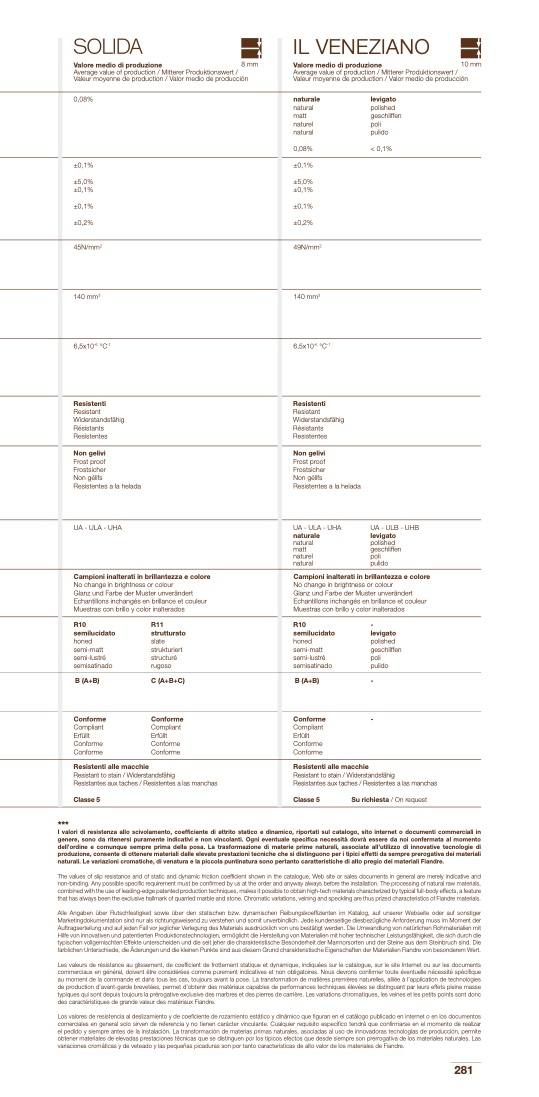 The values of slip resistance and of static and dynamic friction coefficient shown in the catalogue, Web site or sales documents in general are merely indicative and