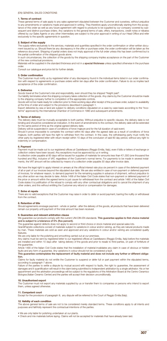 Any claims must be sent by registered letter to our registered offices at Castellarano (Reggio Emilia, Italy) before the materials