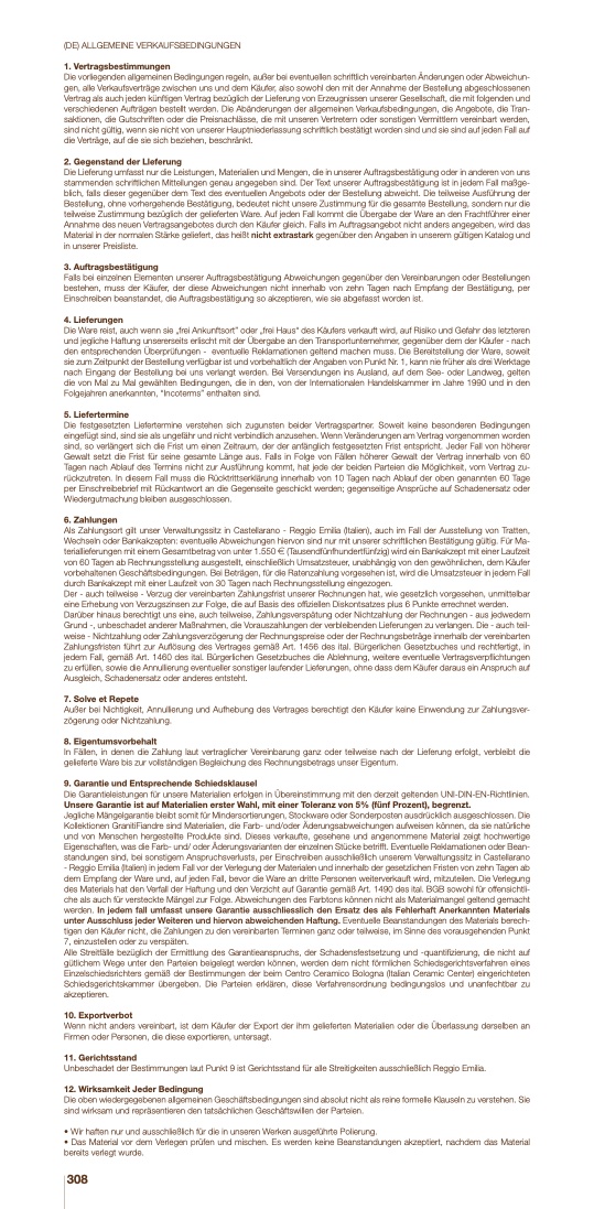 Die Garantieleistungen für unsere Materialien erfolgen in Übereinstimmung mit den derzeit geltenden UNI-DIN-EN-Richtlinien.
