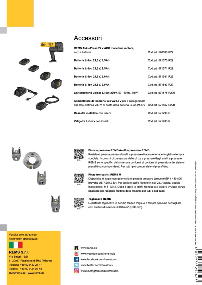 REMS sono specifici del sistema e conformi ai contorni di pressatura dei sistemi