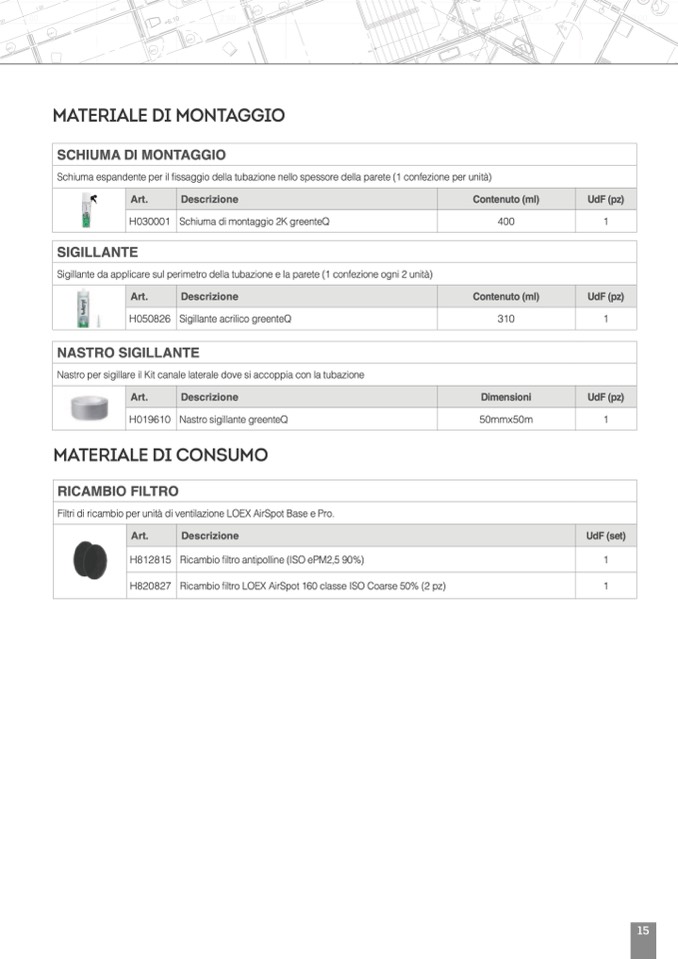 Filtri di ricambio per unità di ventilazione LOEX AirSpot Base e Pro.