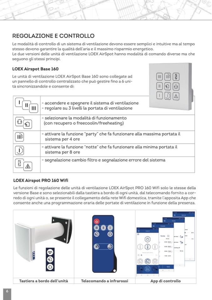 Le funzioni di regolazione delle unità di ventilazione LOEX AirSpot PRO 160 Wifi solo le stesse della