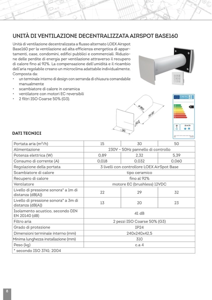 UNITÀ DI VENTILAZIONE DECENTRALIZZATA AIRSPOT BASE160