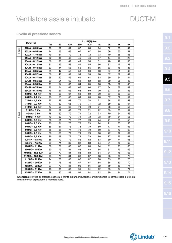 Attenzione: il livello di pressione sonora è riferito ad una misurazione onnidirezionale in campo libero a 3 m dal