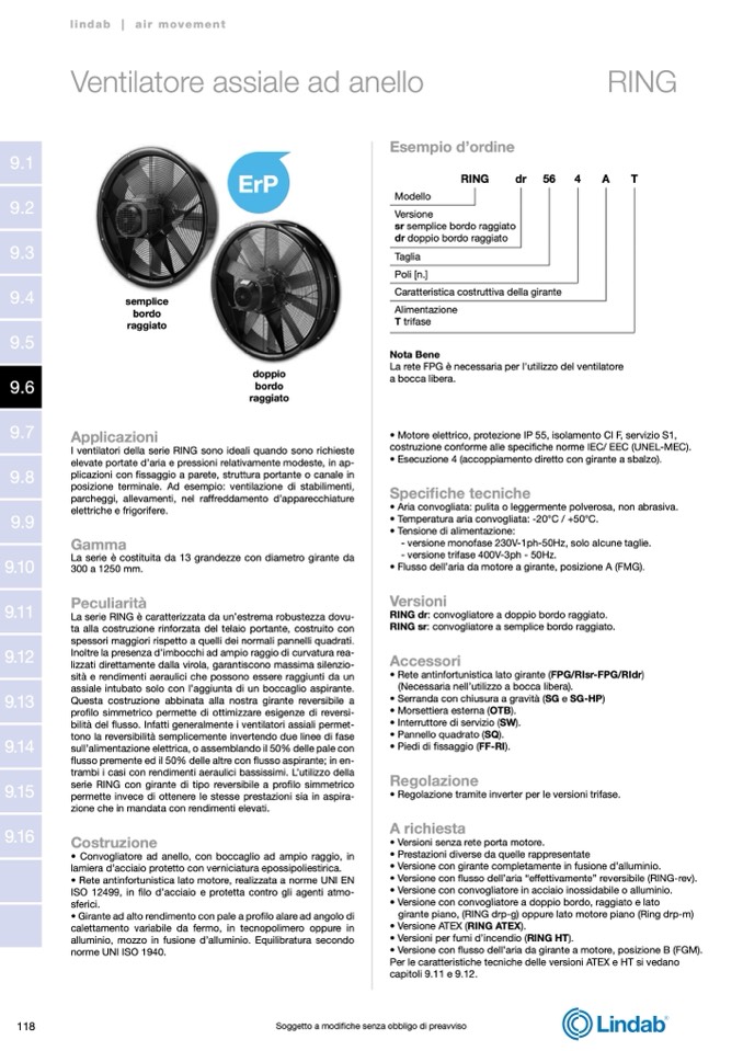serie RING con girante di tipo reversibile a profilo simmetrico