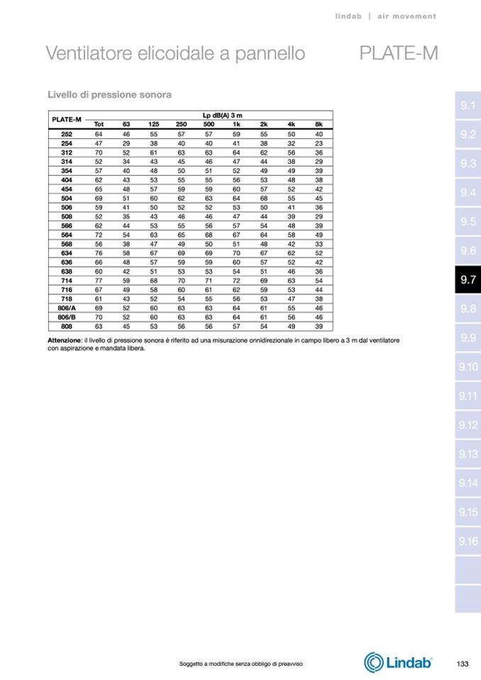 Attenzione: il livello di pressione sonora è riferito ad una misurazione onnidirezionale in campo libero a 3 m dal ventilatore