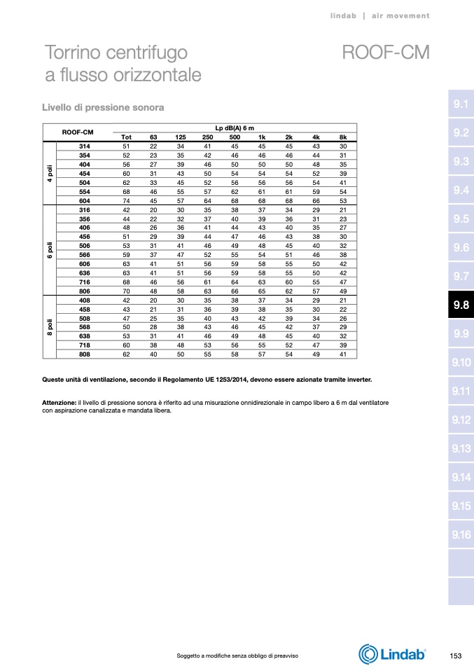Attenzione: il livello di pressione sonora è riferito ad una misurazione onnidirezionale in campo libero a 6 m dal ventilatore