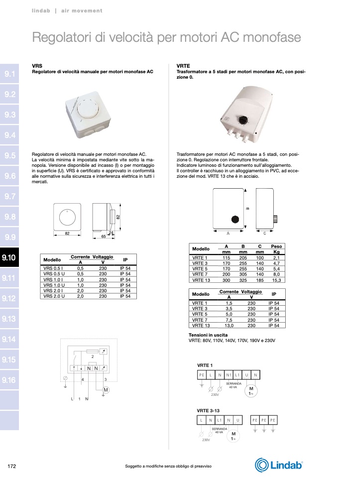 VRTE: 80V, 110V, 140V, 170V, 190V e 230V