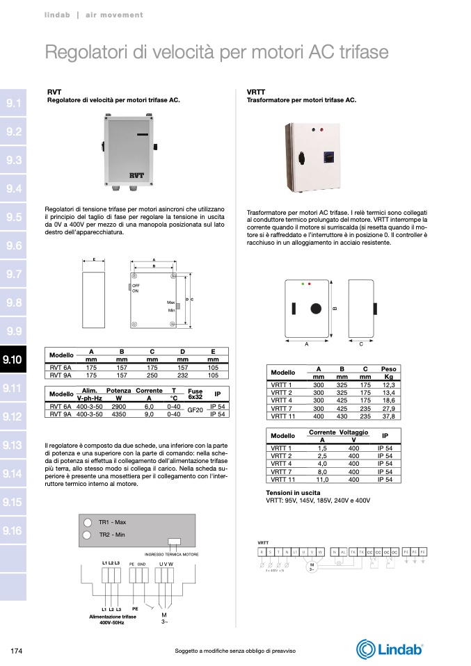 VRTT: 95V, 145V, 185V, 240V e 400V