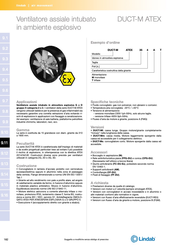 gruppo II categoria 2 o 3. I ventilatori della serie DUCT-M ATEX