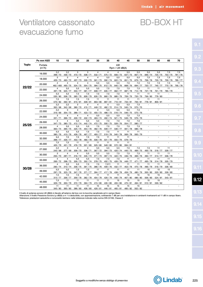 Tolleranze: prestazioni aerauliche e rumorosità rientrano nelle tolleranze indicate nella norma DIN 24166, Classe 2