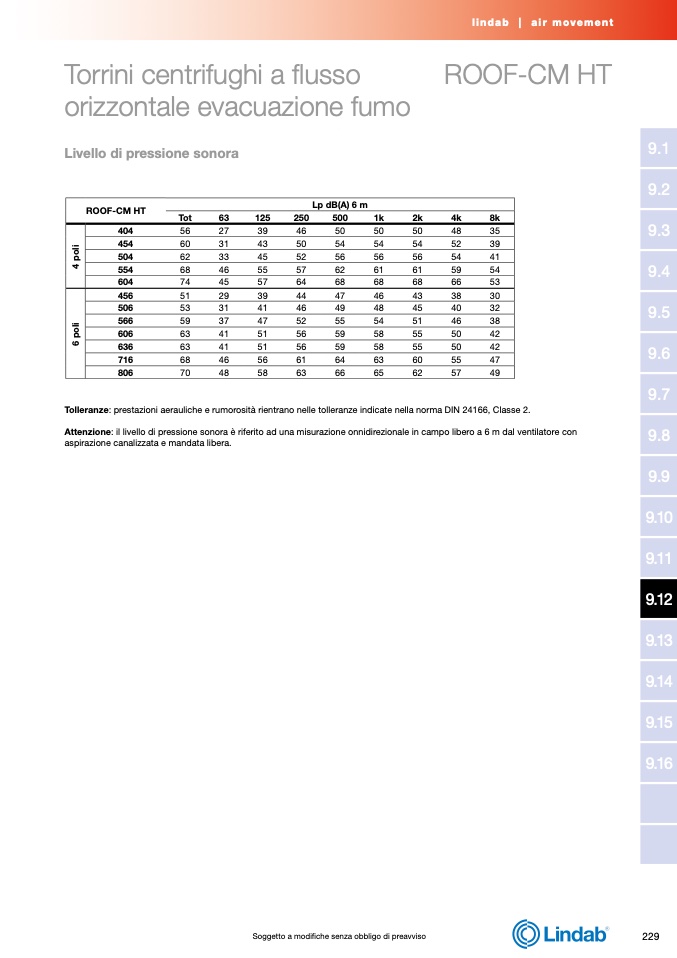 Tolleranze: prestazioni aerauliche e rumorosità rientrano nelle tolleranze indicate nella norma DIN 24166, Classe 2.
