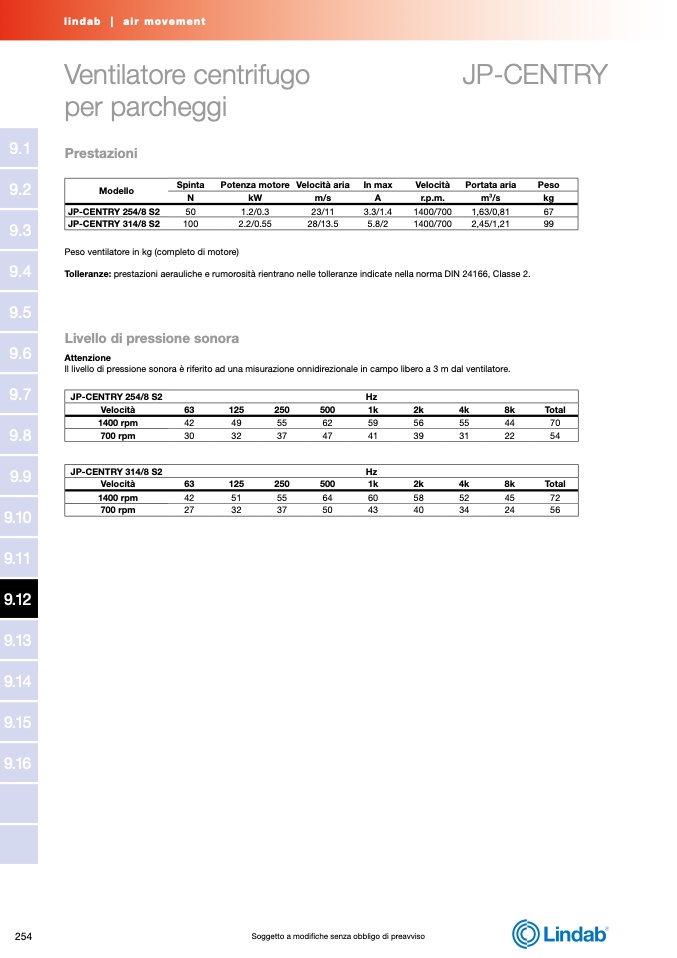 Tolleranze: prestazioni aerauliche e rumorosità rientrano nelle tolleranze indicate nella norma DIN 24166, Classe 2.