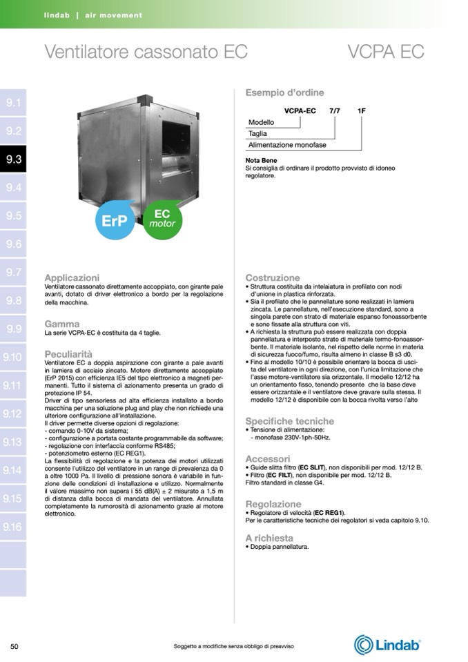 Ventilatore cassonato direttamente accoppiato, con girante pale