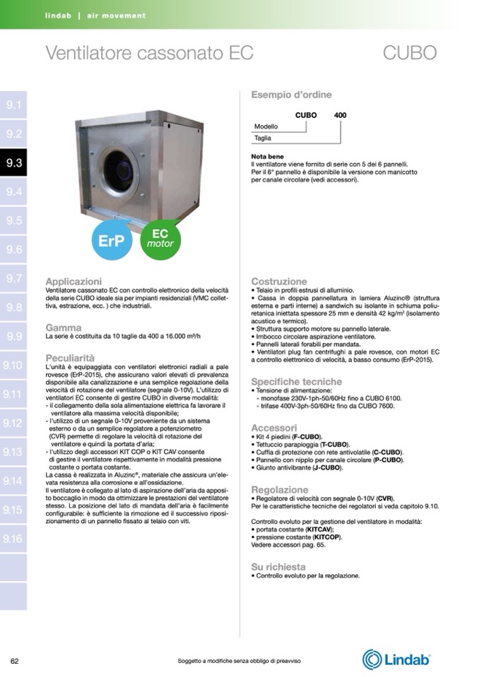 della serie CUBO ideale sia per impianti residenziali (VMC collet-