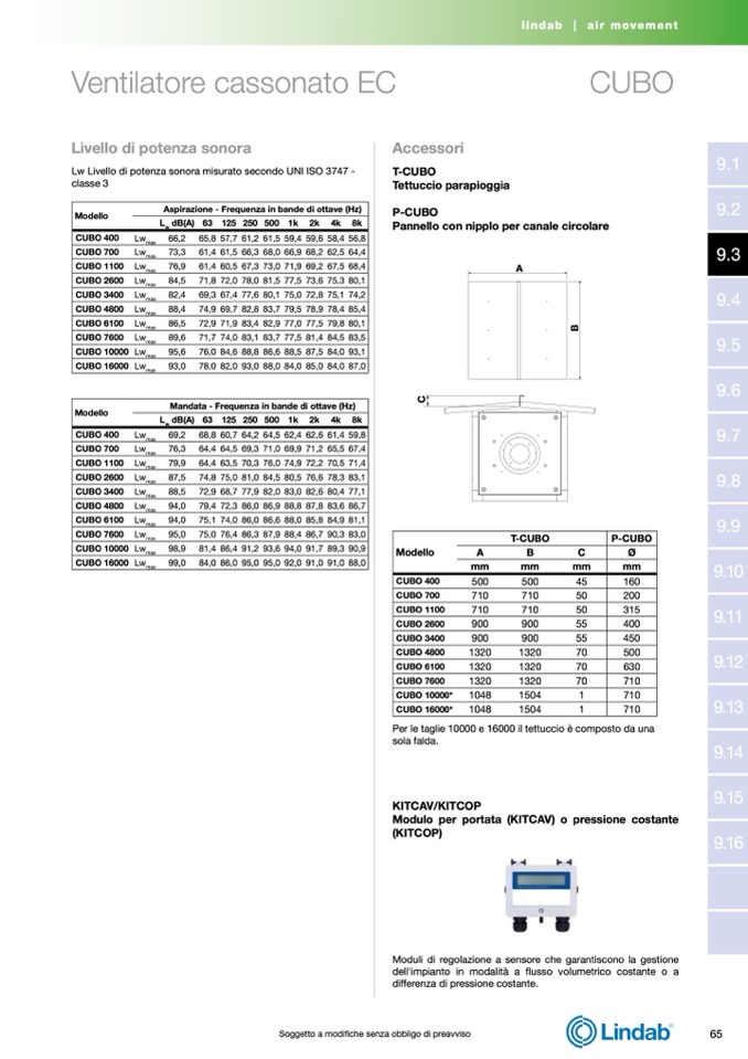 Lw Livello di potenza sonora misurato secondo UNI ISO 3747 -