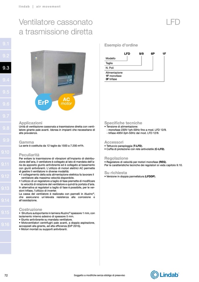 - monofase 230V-1ph-50Hz fino a mod. LFD 12/9.