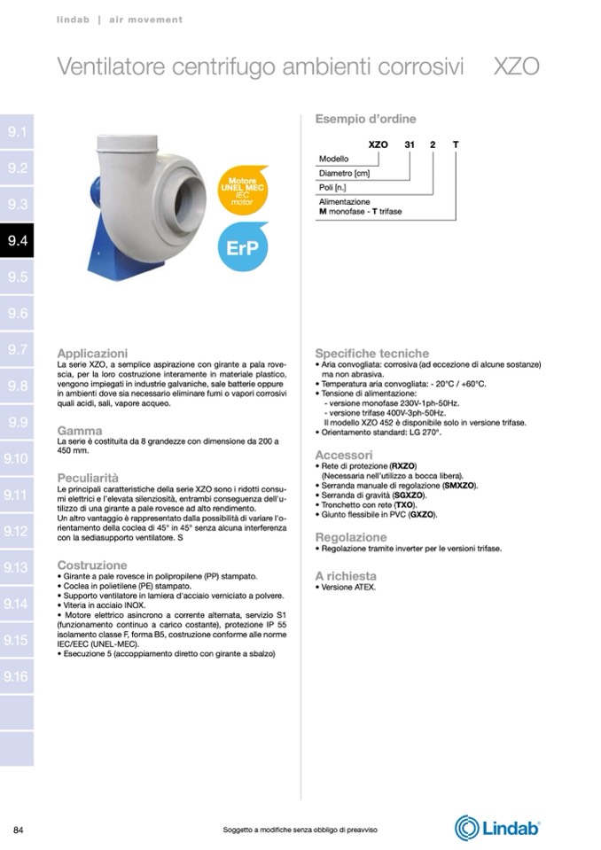 Il modello XZO 452 è disponibile solo in versione trifase.