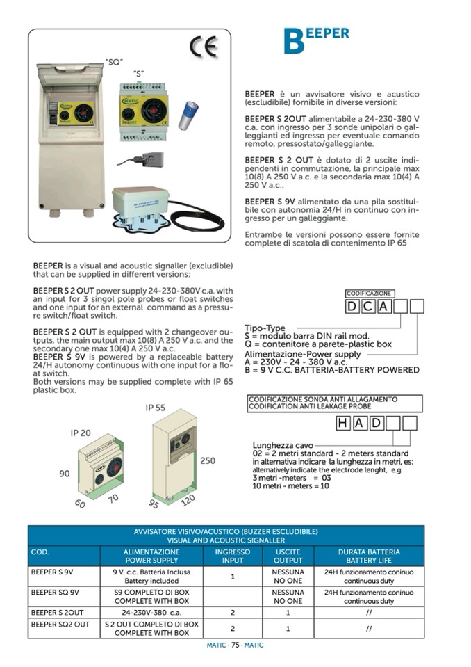 BEEPER S 2 OUT power supply 24-230-380V c.a. with