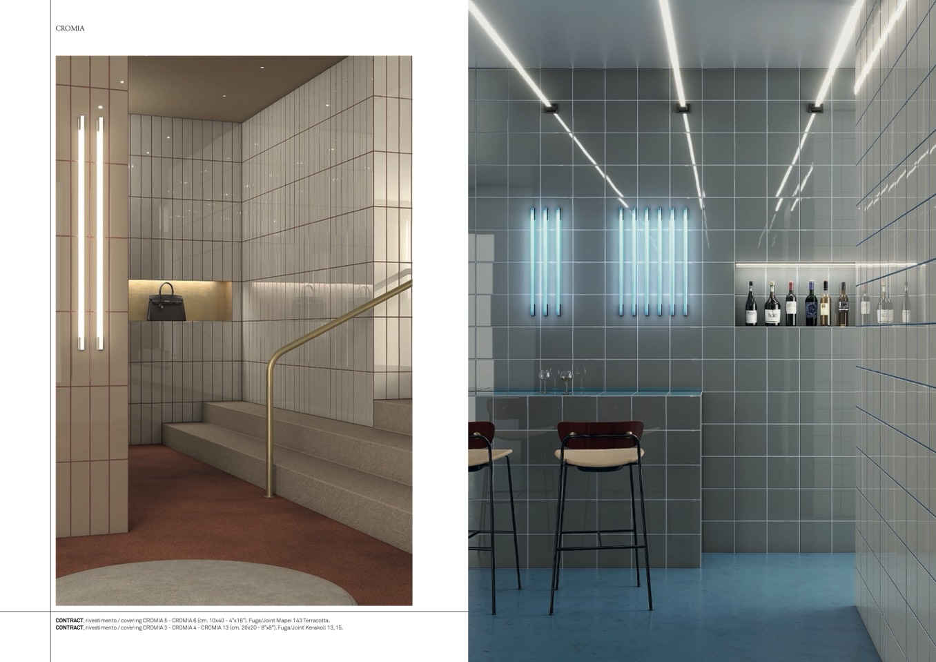 CONTRACT, rivestimento / covering CROMIA 5 - CROMIA 6 (cm. 10x40 - 4”x16”). Fuga/Joint Mapei 143 Terracotta.