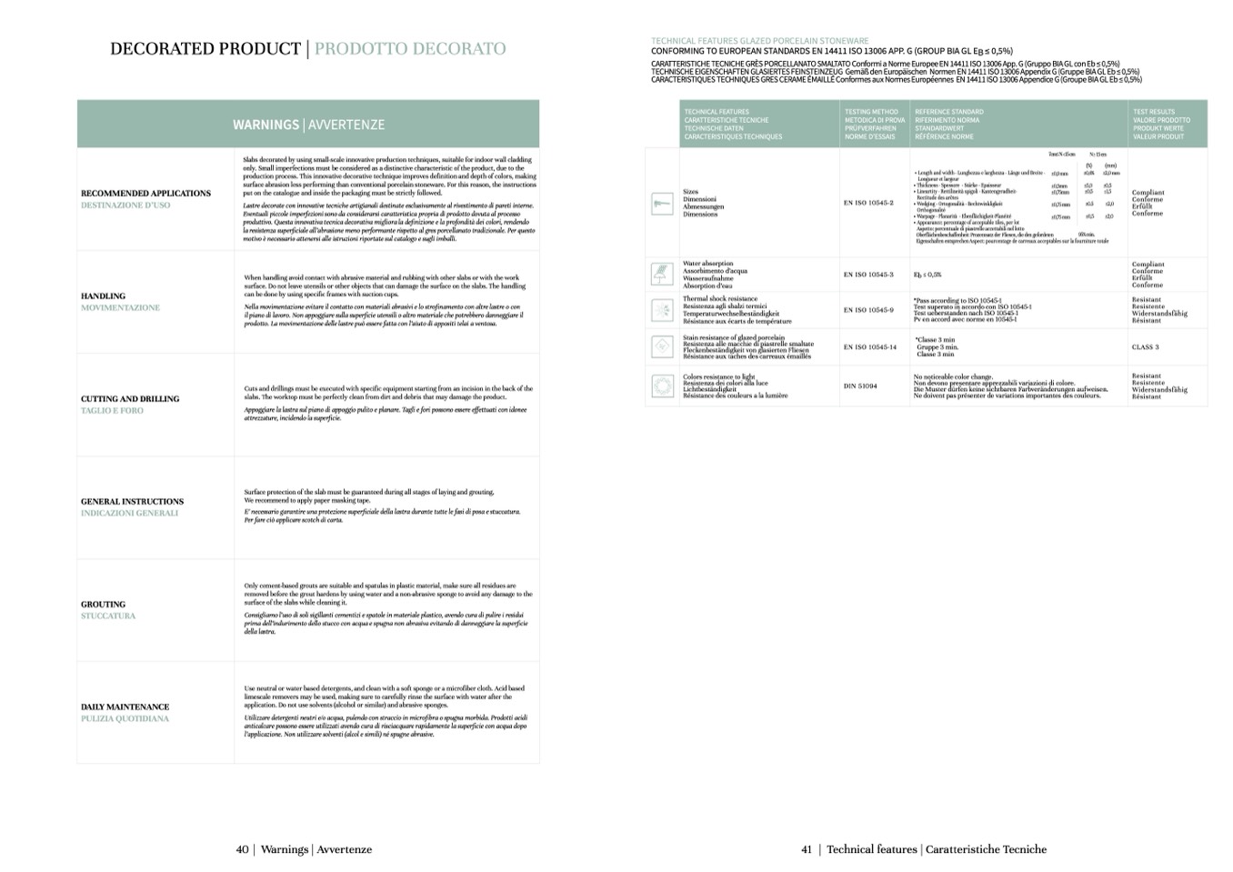 CONFORMING TO EUROPEAN STANDARDS EN 14411 ISO 13006 APP. G (GROUP BIA GL EB ≤ 0,5%)