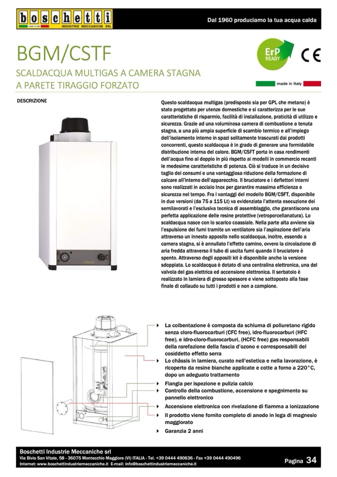 Questo scaldacqua multigas (predisposto sia per GPL che metano) è