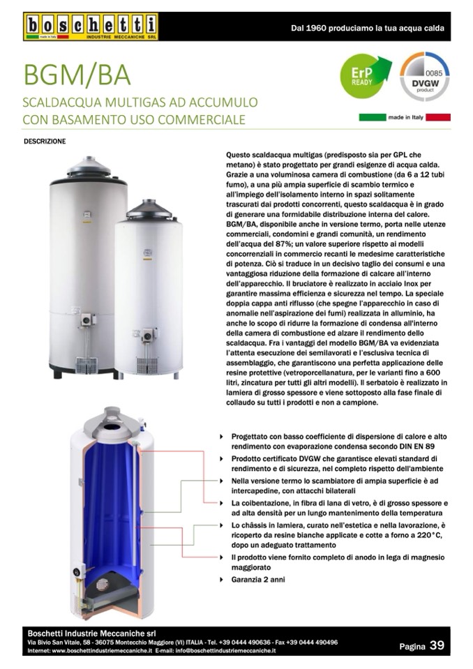 scaldacqua. Fra i vantaggi del modello BGM/BA va evidenziata