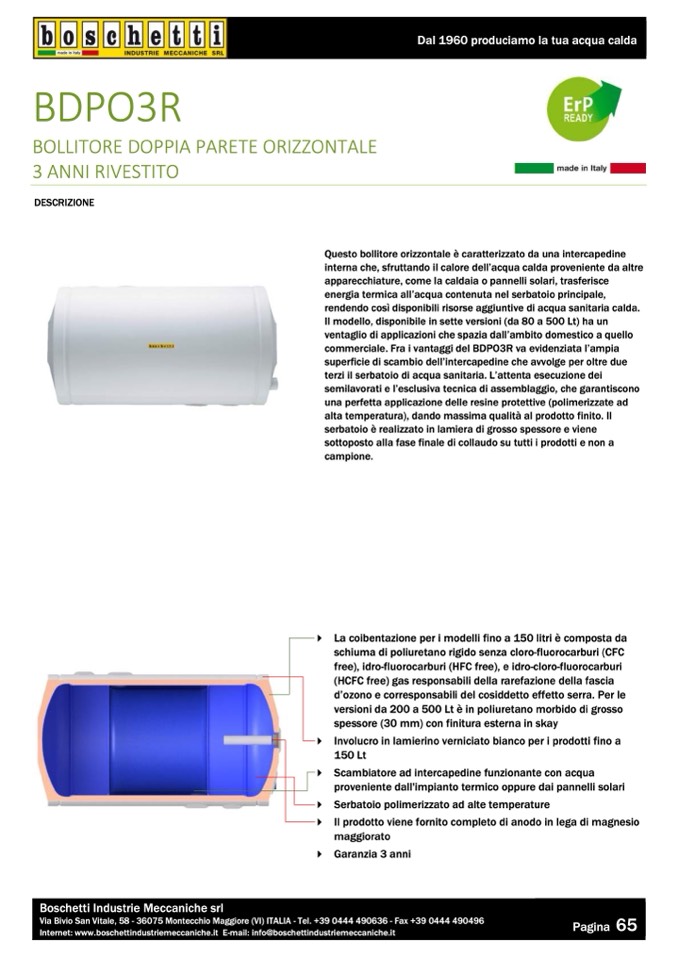 Il modello, disponibile in sette versioni (da 80 a 500 Lt) ha un
