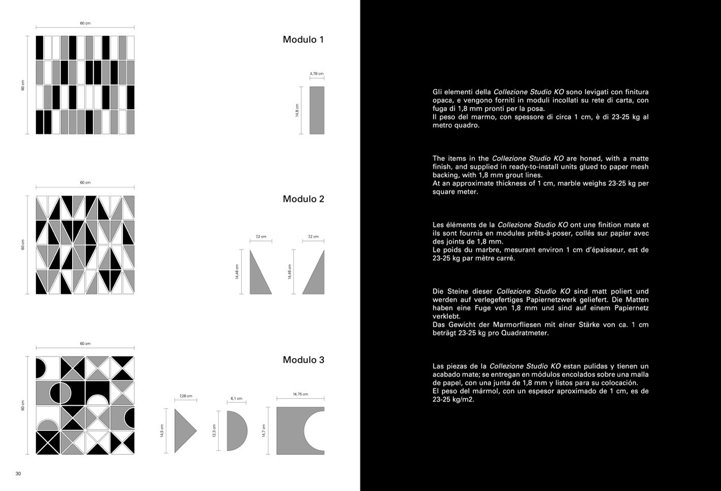 Gli elementi della Collezione Studio KO sono levigati con finitura