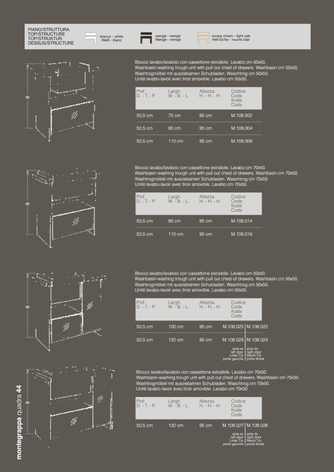 Washbasin-washing trough unit with pull out chest of drawers. Washbasin cm 50x50.