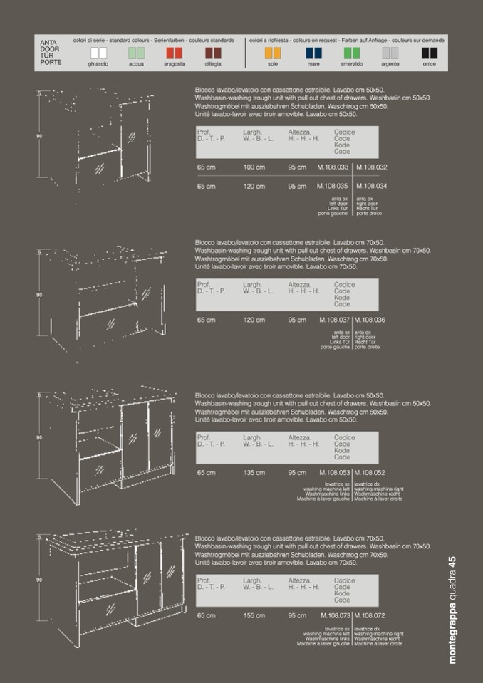 Washbasin-washing trough unit with pull out chest of drawers. Washbasin cm 50x50.