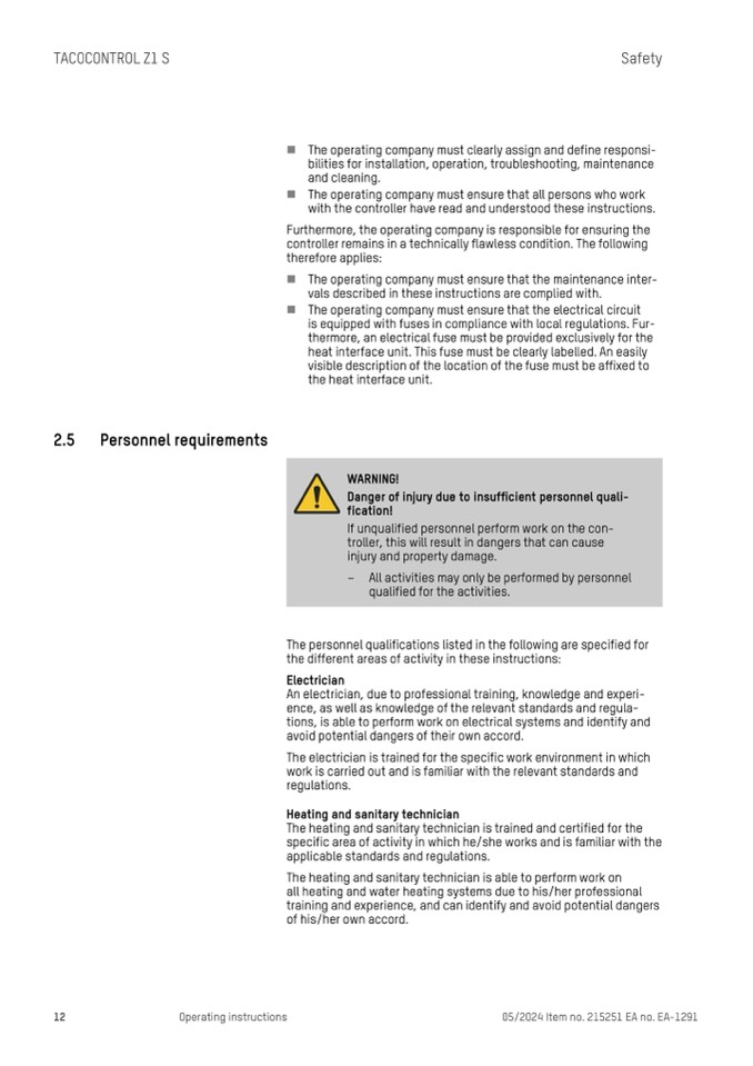 The operating company must clearly assign and define responsi-