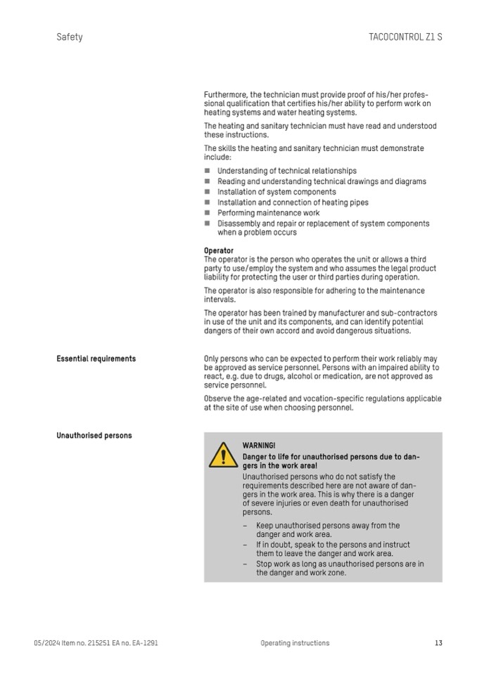 The heating and sanitary technician must have read and understood