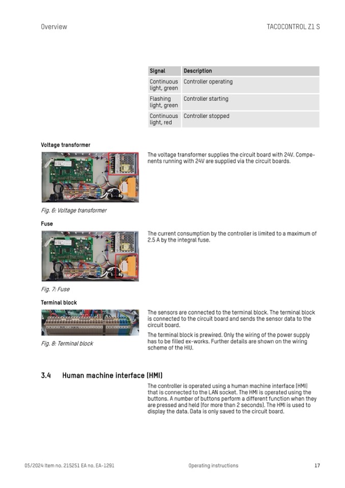 The voltage transformer supplies the circuit board with 24V. Compe-