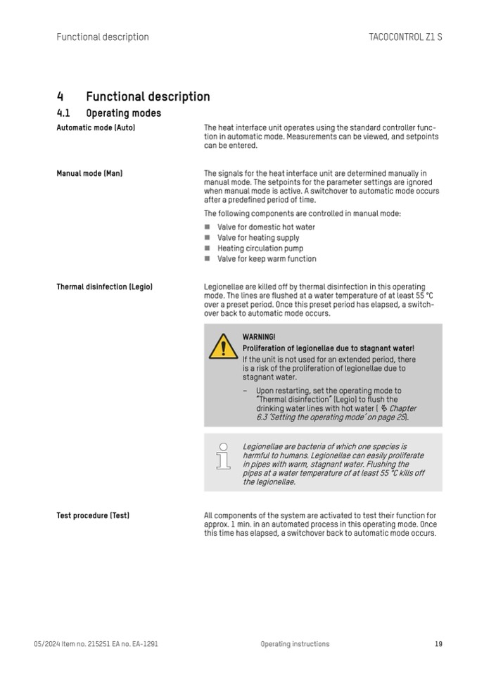 mode. The lines are flushed at a water temperature of at least 55 °C