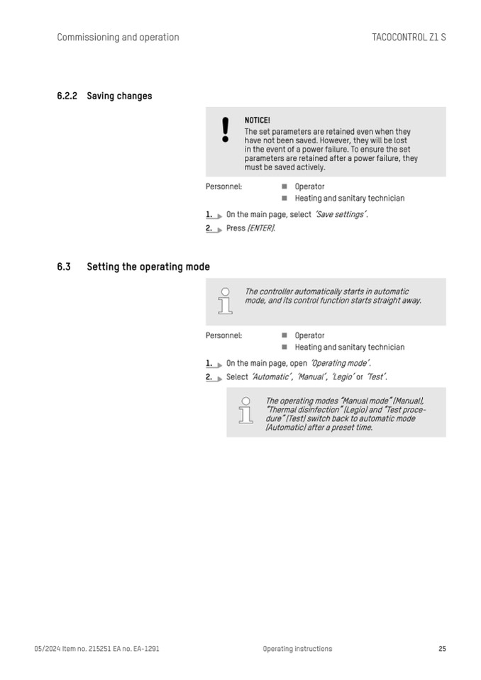 Select ‘Automatic’, ‘Manual’, ‘Legio’ or ‘Test’.